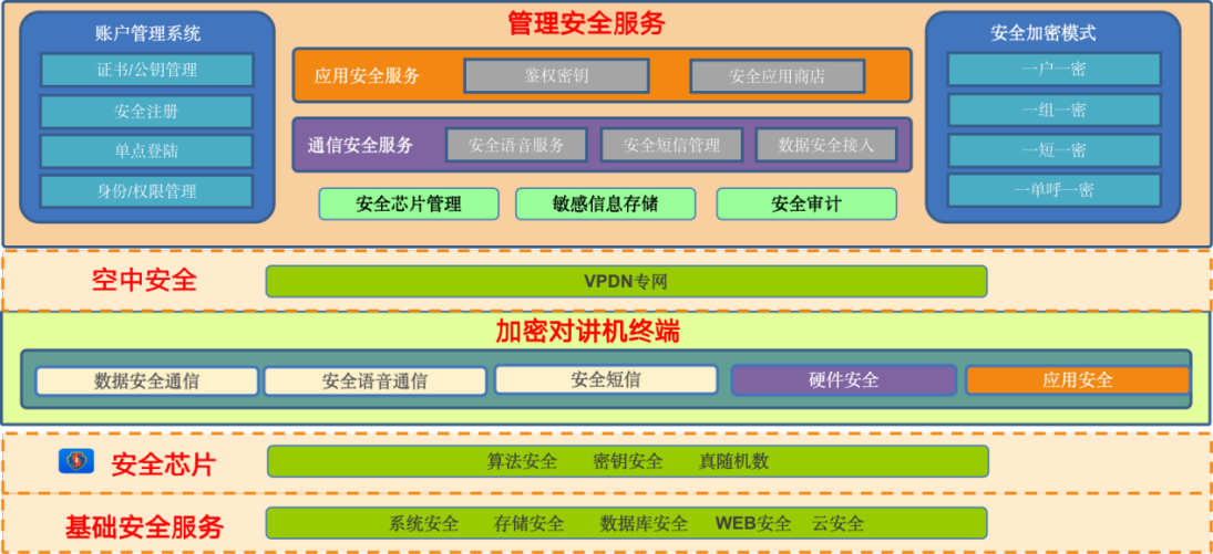 海高思加密對(duì)講機(jī)不止軟件加密,硬件也同樣機(jī)密。只通過(guò)VPDN傳輸,私密性更強(qiáng)。我們的后臺(tái)服務(wù)系統(tǒng)使用的也是國(guó)產(chǎn)的商密算法還提供自定義算法。
